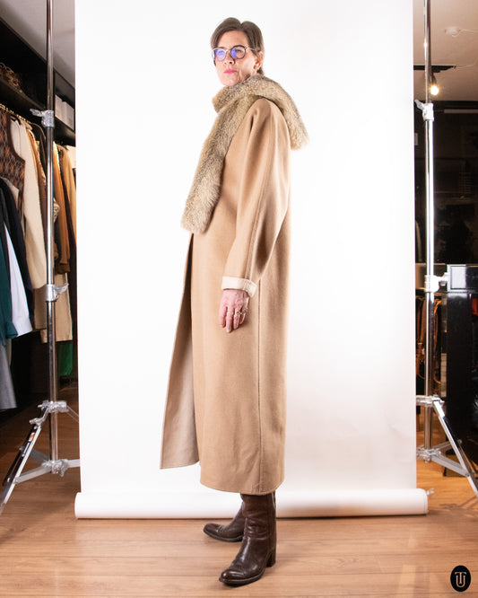 60's Yves Saint Laurent Camel & Fox Fur Coat L