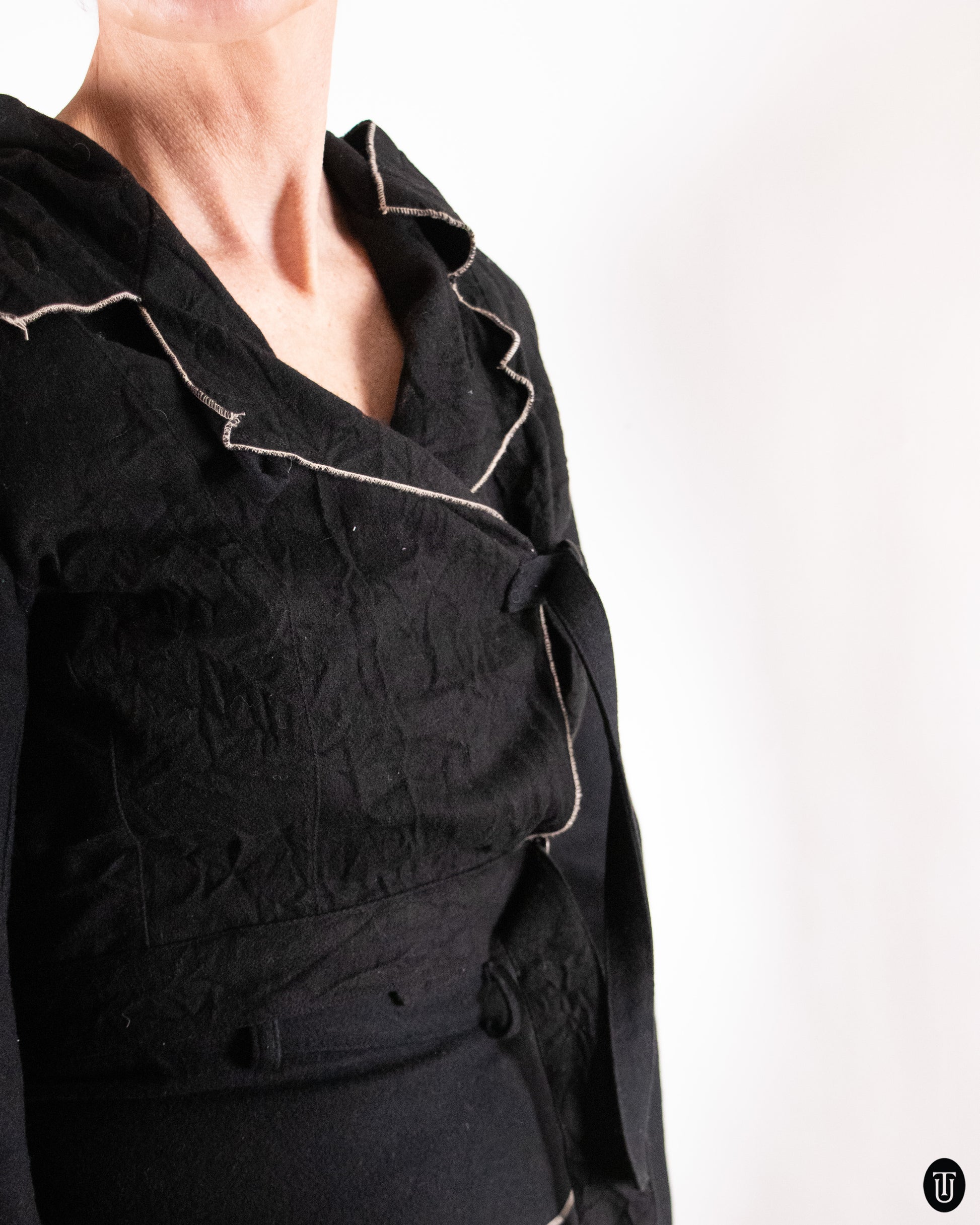 This 2000s Ivan Grundahl two-piece set is crafted from a structured wool blend. The fabric offers warmth and has a dry, slightly matte finish that enhances the sculptural construction and asymmetrical lines. Contrasting seam detailing subtly outlines the form, creating a refined yet directional ensemble characteristic of Grundahl’s distinct design language.