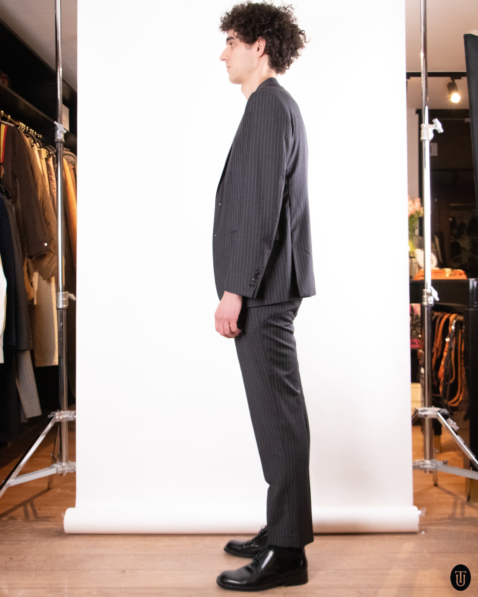 This Italian suit from Pal Zileri is tailored in fine wool with a crisp pinstripe that sharpens its clean silhouette. The lightweight fabric and precise cut reflects the brand’s refined Italian approach to contemporary tailoring, making it equally suited to formal wear or relaxed styling with knitwear and tees.