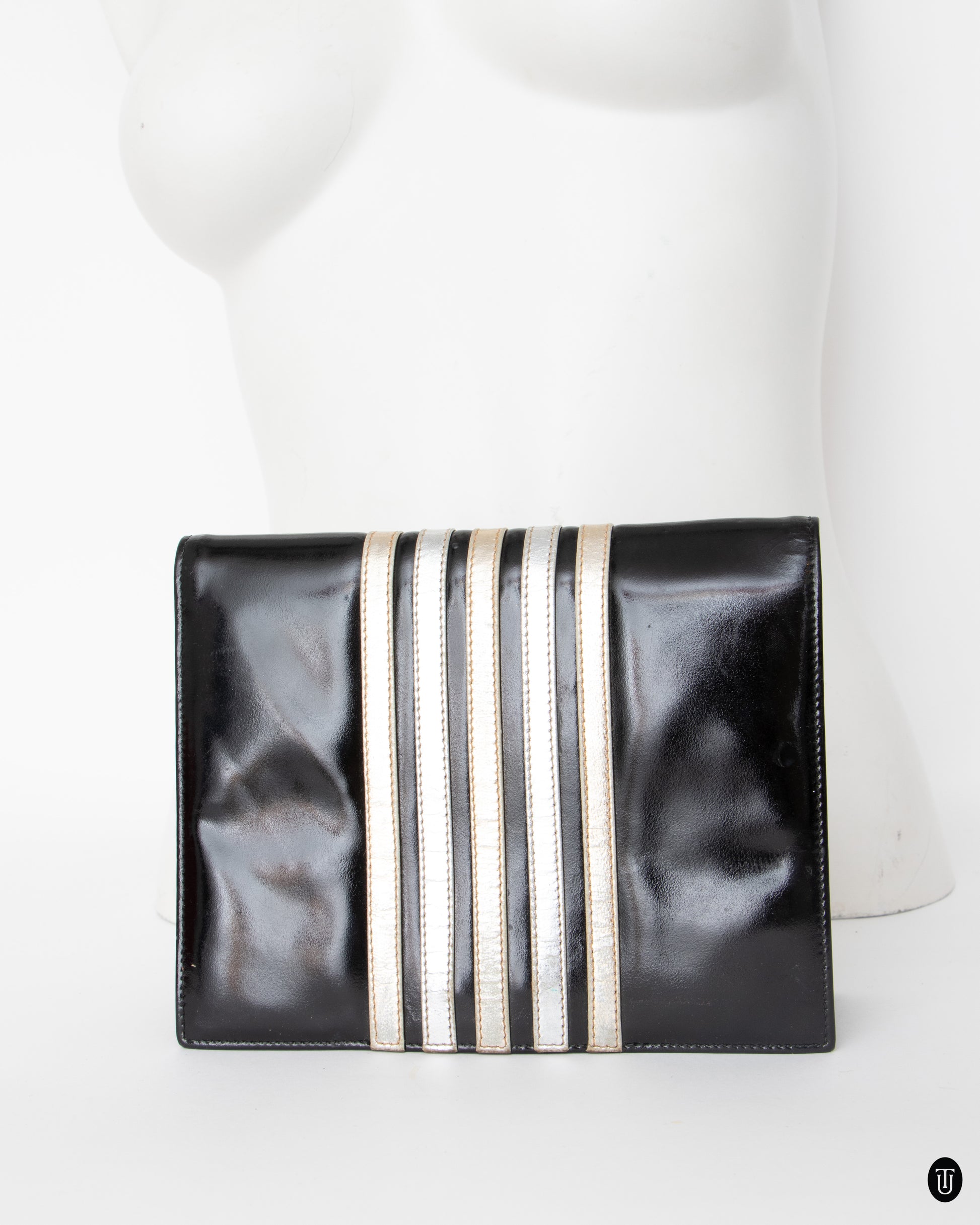 70's Yves Saint Laurent Patent Leather and Metallic Clutch