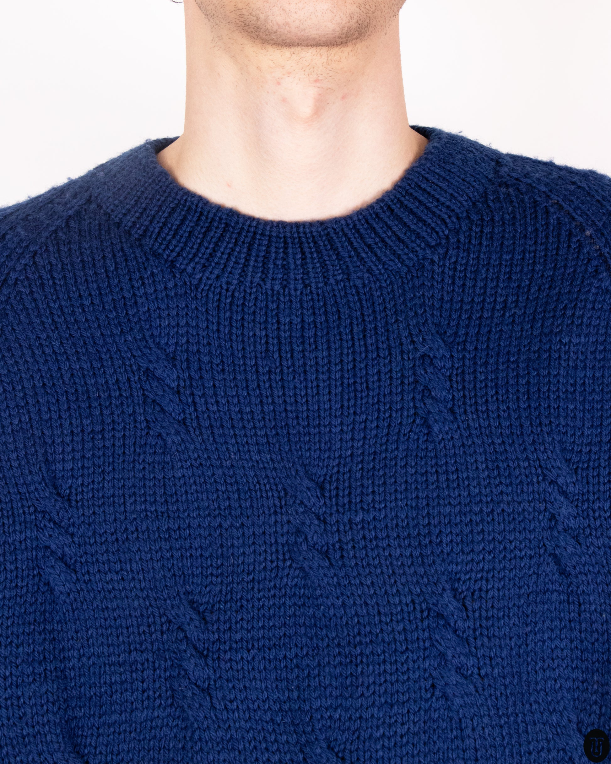 This 1980s Missoni sweater features a rich, deep blue hue and is crafted in a textured knit with subtle zigzag-like patterns—a quiet nod to the brand’s signature motif. It has a relaxed fit with a classic crew neckline, ribbed cuffs, and hem, offering both comfort and style.