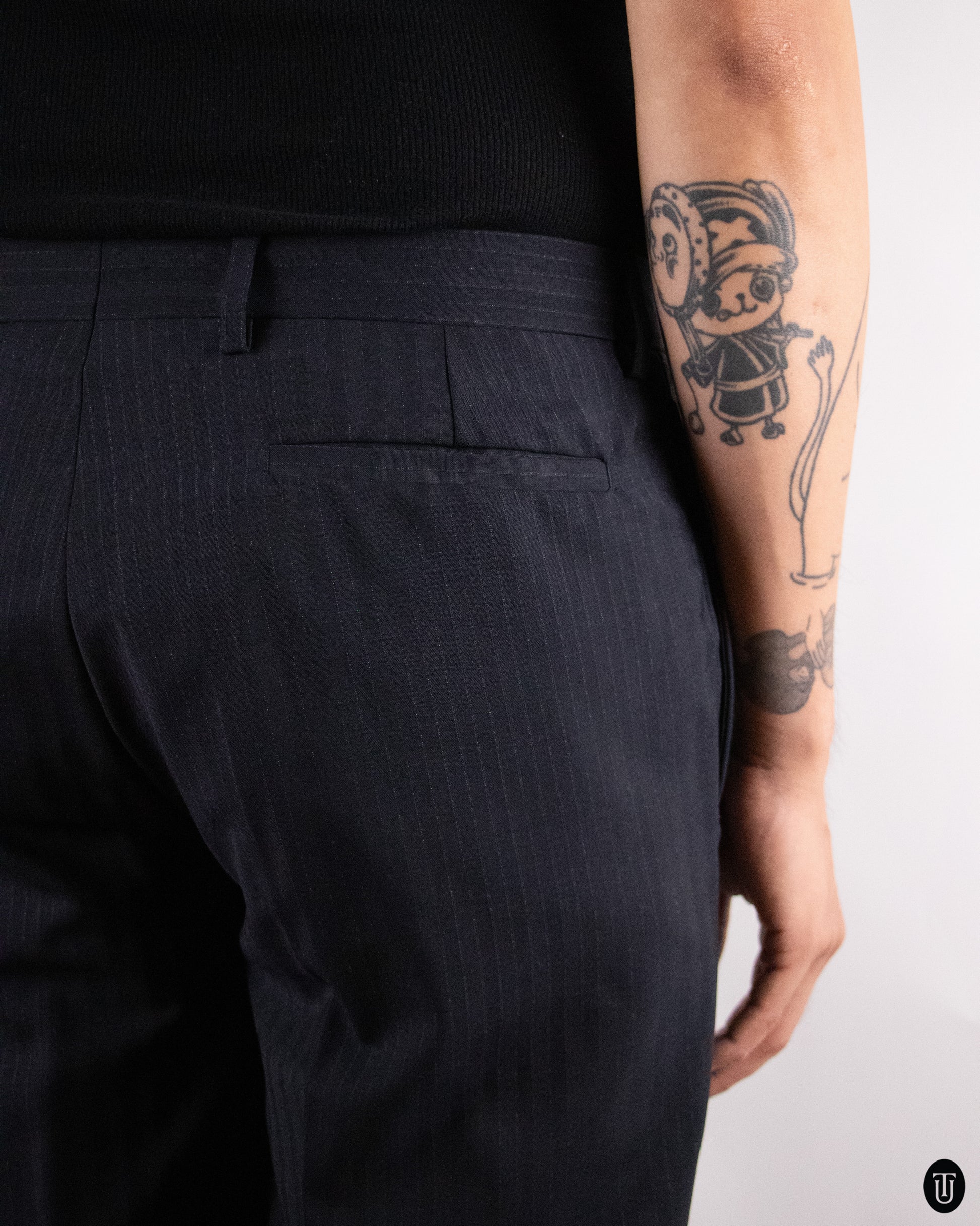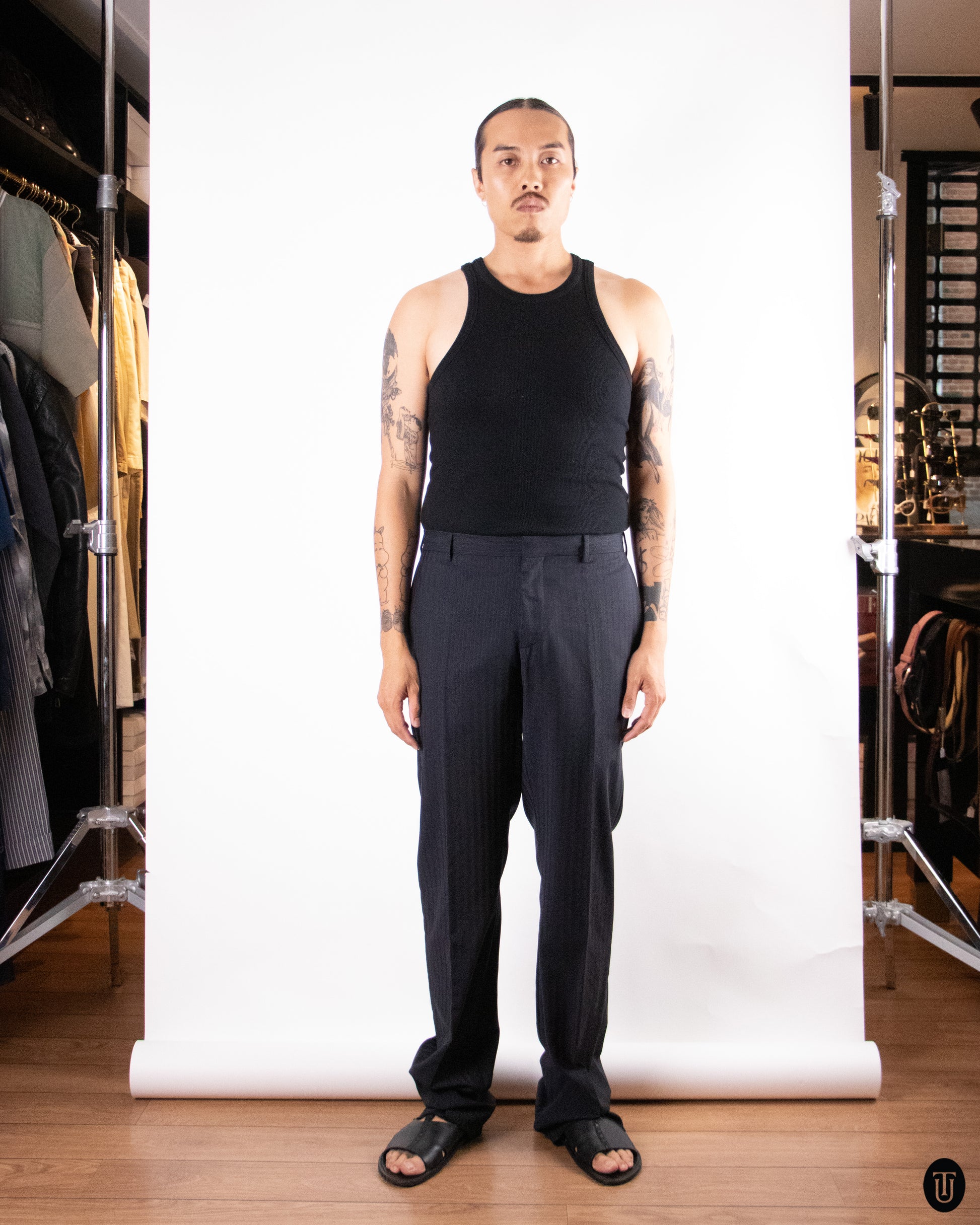 This 1990s Dior suit, from Karl Lagerfeld’s personal collection and designed under Hedi Slimane, is tailored from a refined wool and mohair blend with a crisp hand and subtle sheen. The mohair content lends structure and breathability, allowing the suit to drape cleanly while remaining lightweight. Its silhouette is sharp yet relaxed. Fine pinstriping and restrained detailing reflect Dior’s quiet approach to luxury in this era, embodying enduring quality and material integrity.