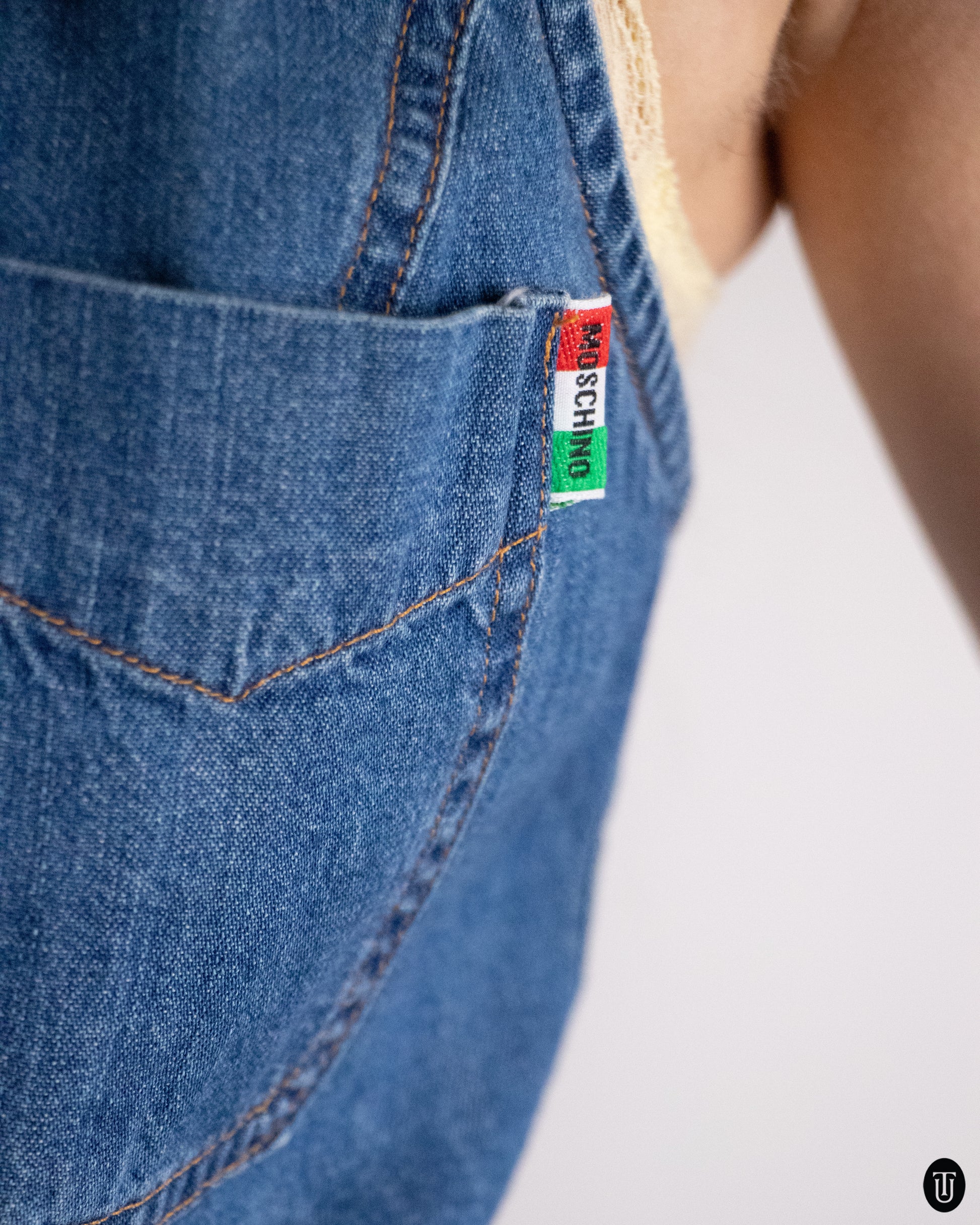 Crafted from high-quality cotton denim, this 1990s Moschino halter top showcases the brand’s signature blend of playful design and refined craftsmanship. The piece reimagines a classic button-down shirt with a sculpted halter silhouette, structured collar, and tailored seaming that flatters the form.
