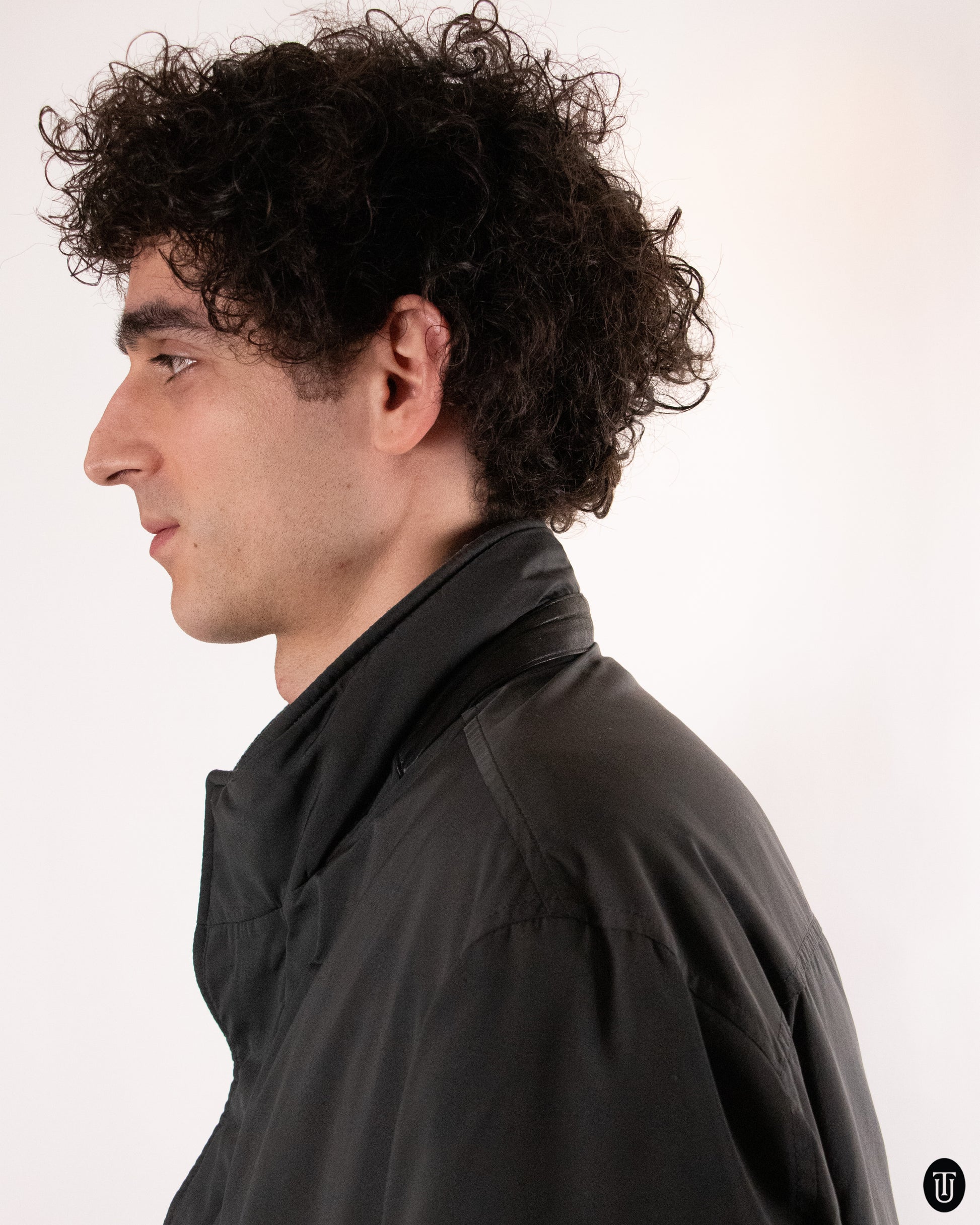 This 2010s Brioni puffer jacket in a dark grey matte tone falls just below the lower waist line. The coat features 100% wool lining, and leather details through out (on the zipper and neckline) to add depth and edge to an otherwise minimal look. The jacket features a double closure functions, buttons over zippers, to ensure the wearer stays warm as well as two oversized functional pockets on the front of the coat.