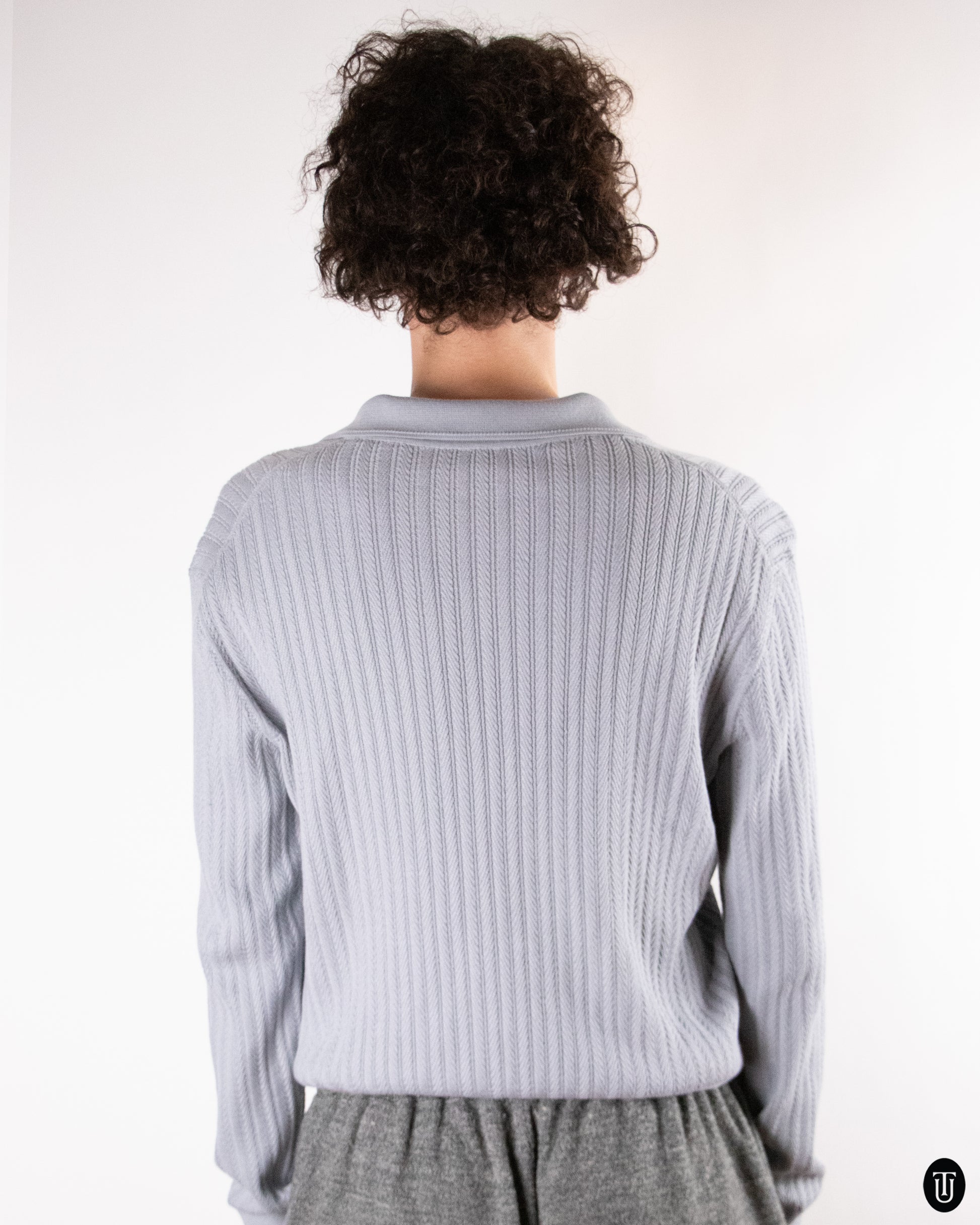 Fine-knit 2000s sweater by Brioni, crafted in Italy. The design features a subtle vertical rib knit with an open polo-style collar, combining relaxed elegance with Brioni’s approach to suiting: refined, discreet, and exceptionally well made. This piece is lightweight and fluid, with a clean silhouette that sits comfortably on the body.