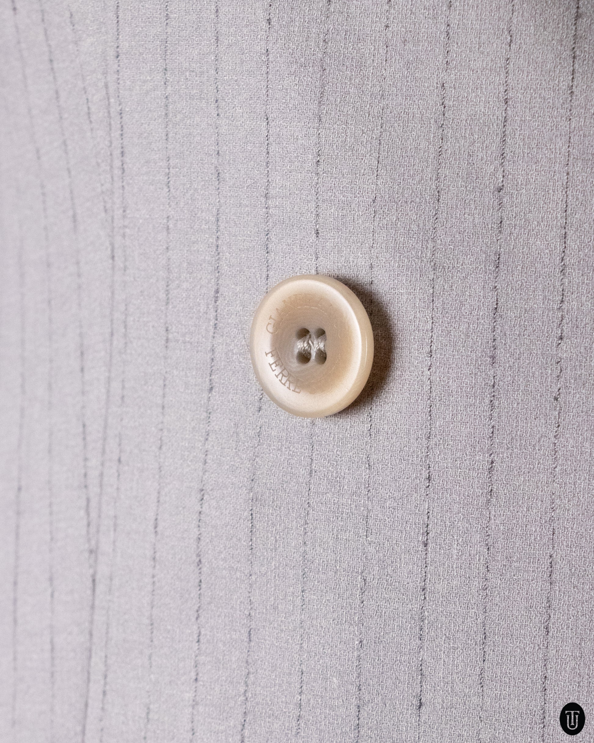 This Gianfranco Ferre suit is quintessential 90's power dressing. From the highwaisted cigarette trousers, to the strong classic lapel and double breasted buttoning is an ode to the 1990's office core. The light gray, thin pin stripe suit is crafted from a light weight wool blend, making it suitable all year round.